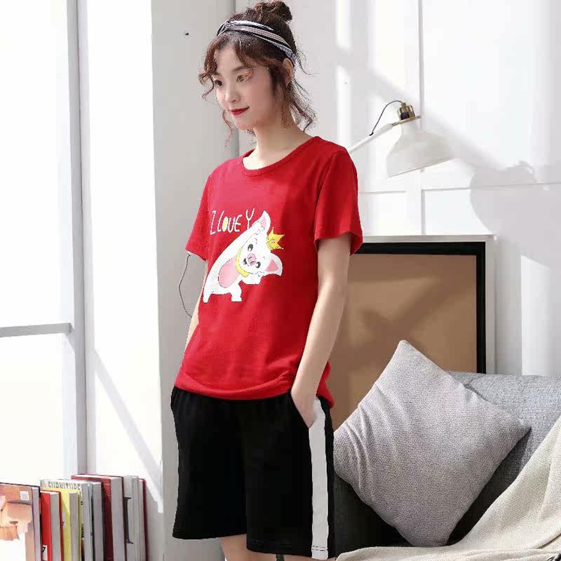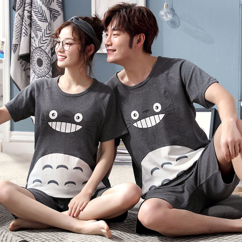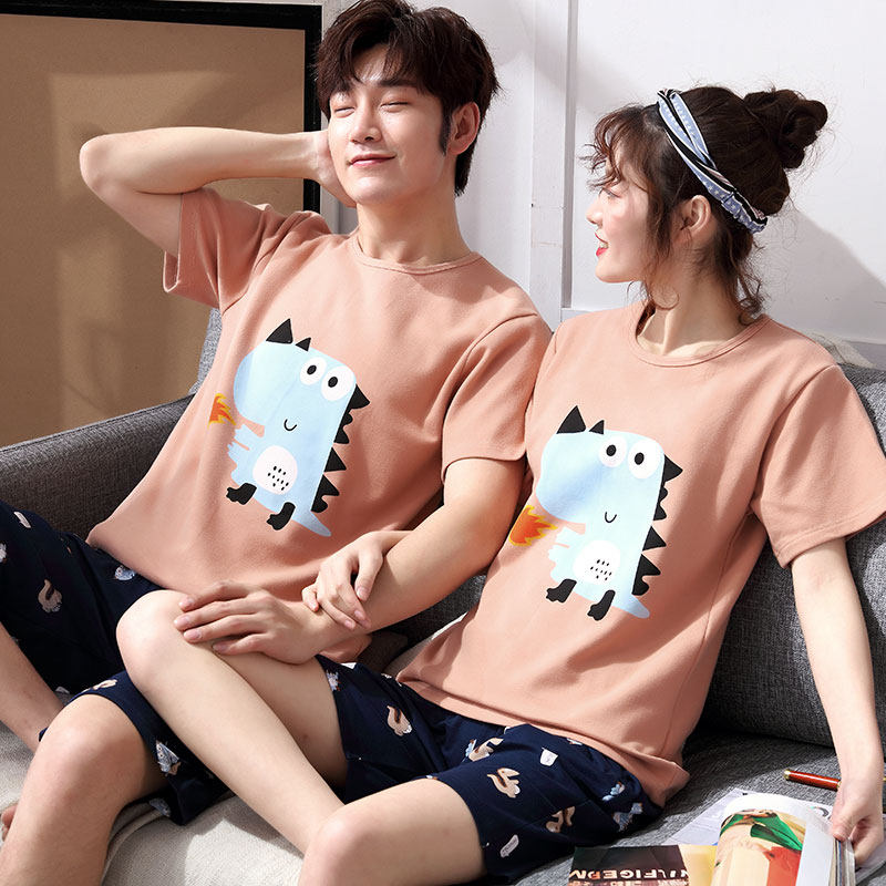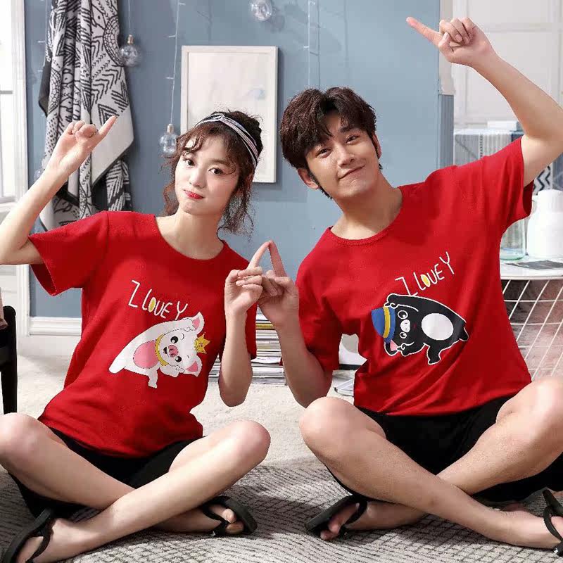 Pig couple pajamas short-sleeved summer cotton female 200 catties increase plus fat loose male pig Peggy tide