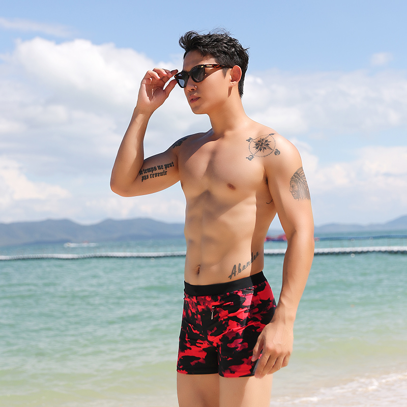 Swimming trunks large size men's swimming trunks printing breathable sports swimming shorts boxer shorts men's boxer swimsuit hot springs