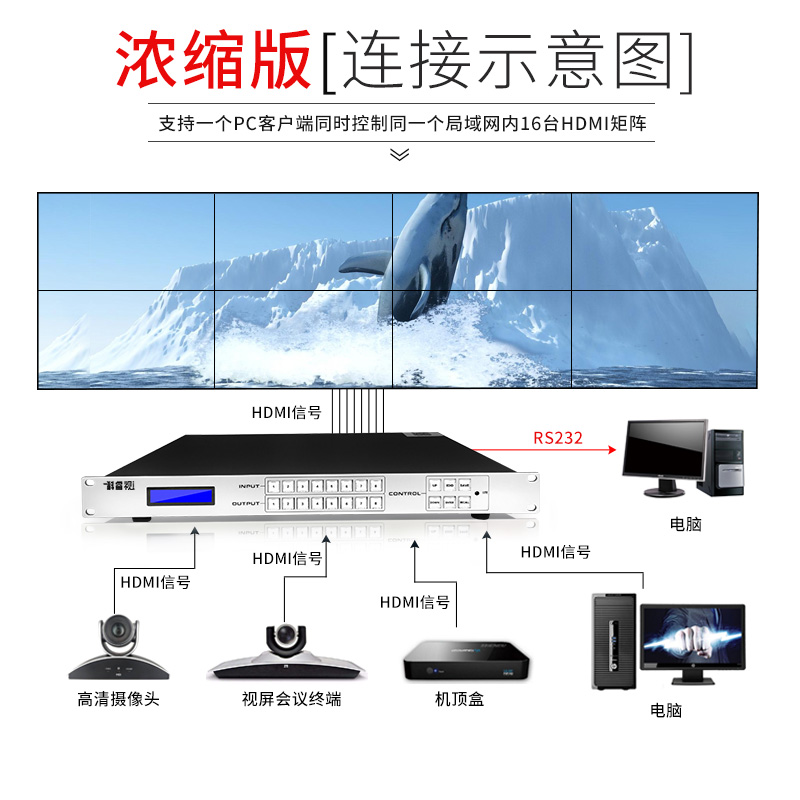 Science Wise View 4K HD hdmi Matrix switcher 8 into 8 out of digital surveillance film Conference Host APP Control