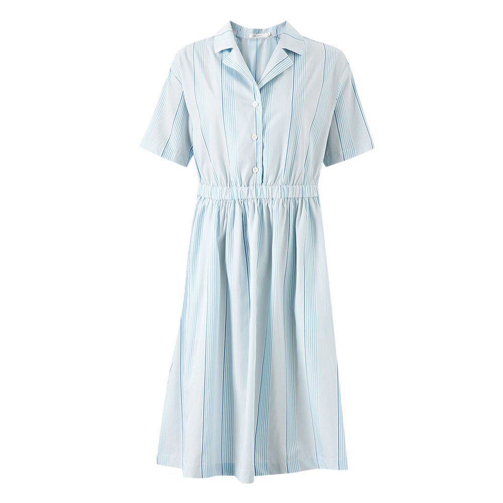 MECITY Female dress lady trendy fashion minimalist comfortable turn collar tying up cashew striped pure color dress woman