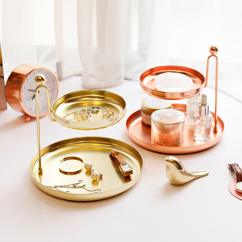 Mino Nordic ins wrought iron double-layer storage tray golden jewelry rack desktop sundries cosmetics storage finishing tray