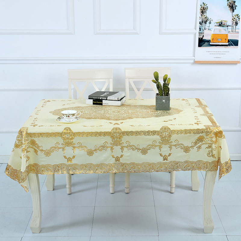 Tablecloth Waterproof oil-proof leave-wash PVC rectangular European hot stamping household table tablecloth Coffee table cloth plastic table mat