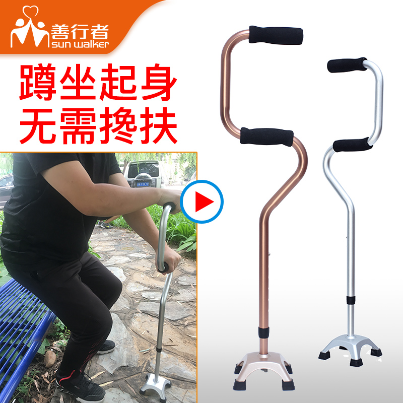 Old man's walking stick with four-legged cane ultra-light up armrests Walking Stick for the Elderly Extendable auxiliary up-to-the-head walker