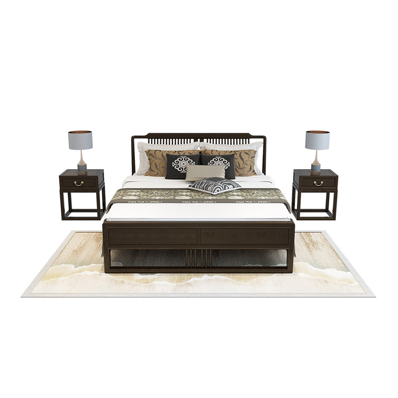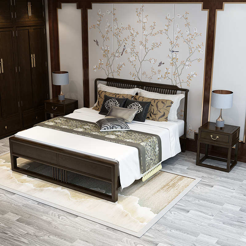 New Chinese solid wood bed bedroom master bedroom double bed modern Chinese luxury master bedroom 18 bed post modern furniture