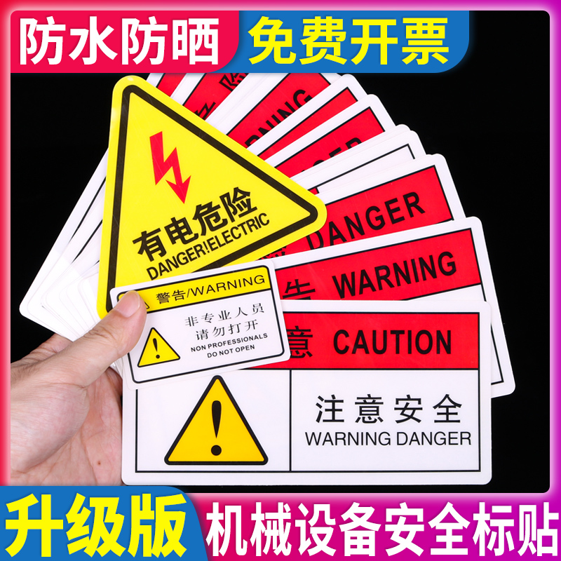 PVC mechanical equipment safety sign label warning sign card beware of electric hazard warning sticker beware of electric shock clip hand attention safety machine self-adhesive prompt sign sign custom made