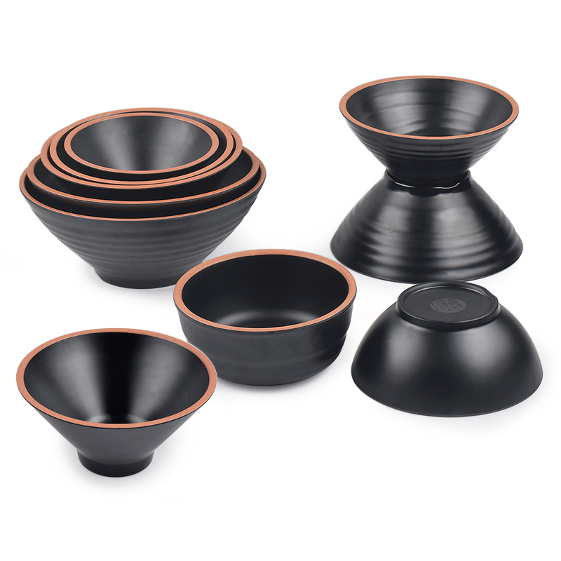 Day Style Taste one thousand Noodles Bowl Thickened resistant to fall Spicy Hot Bowl Plastic Bull Meat Noodle Soup Powder Noodles Bowl Black Lap Flowers