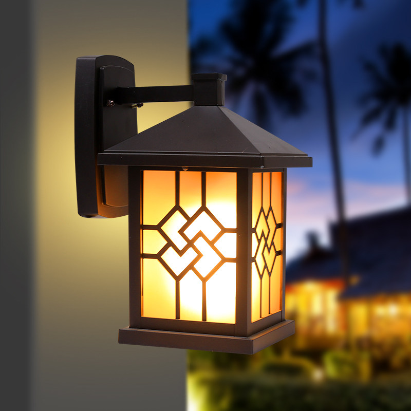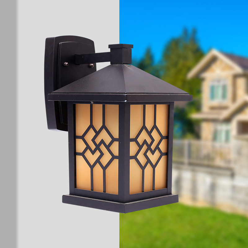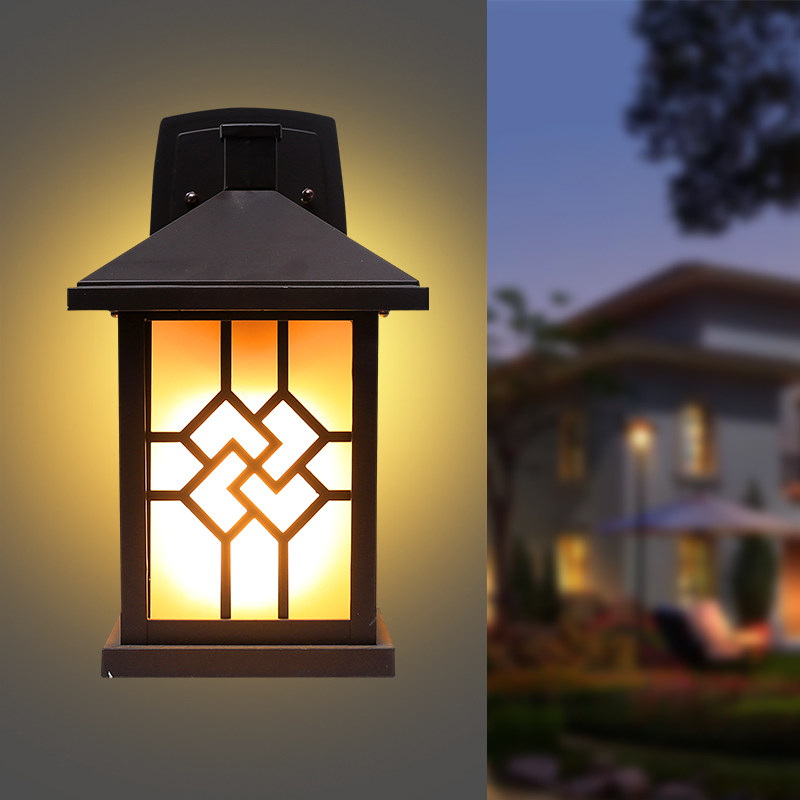 Outdoor waterproof solar wall lamp Community park villa Commercial Chinese style window grille wall lamp Drilling spray paint Coffee gold