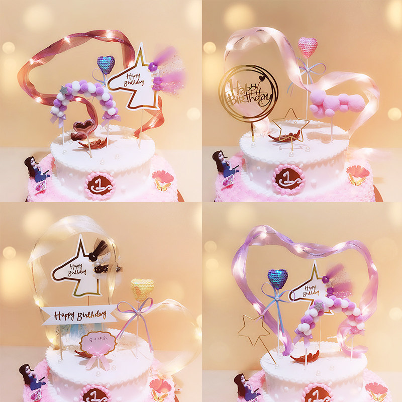 Baking cake decoration insert label streamer ribbon with light insert card Bridal crown headdress Holiday birthday party supplies