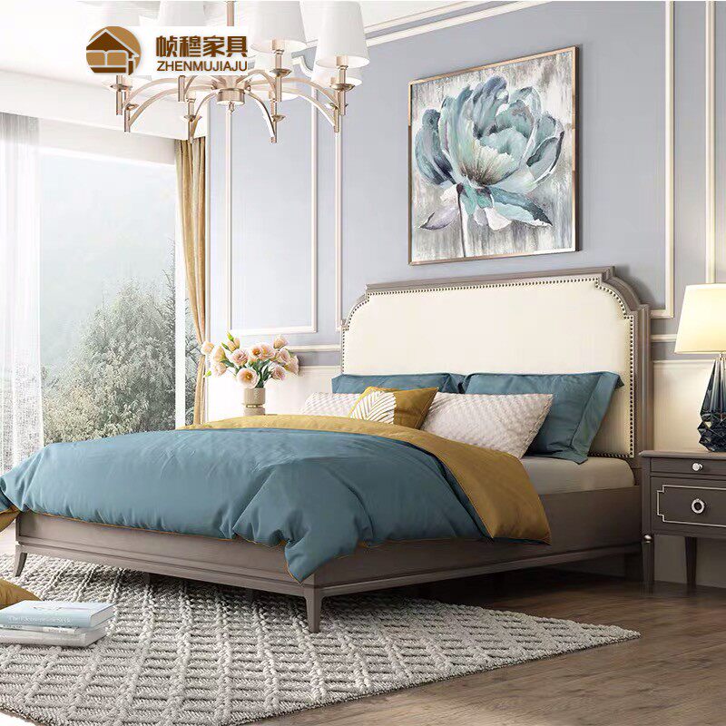 American solid wood bed French country vintage old double bed 1 5 1 8 meters Mediterranean wedding bed Nordic furniture