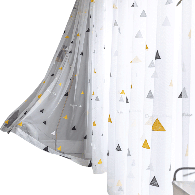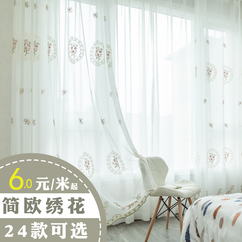 Nordic Modern Ins yarn curtain finished embroidered European-style yarn curtain Living room Bedroom Floating Window Curtain Pure color Balcony White Yarn