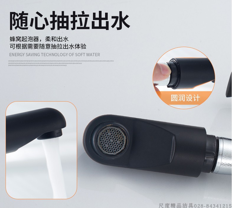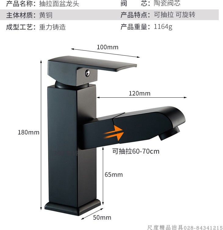 Full copper body black stage Lift suction surface pelvic floor basin hot and cold tap telescopic swivel washable head