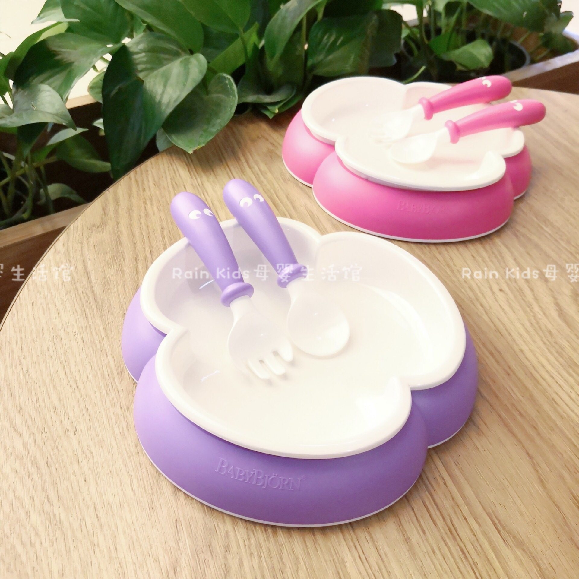 Swedish babybjorn baby skate plate children spoon fork for meal kitchen baby food bowl