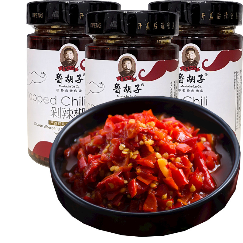 Hunan specialty Changde Taoyuan Lu beard chopped chili 188g*3 bottles of seasoned super spicy chili sauce to open the meal