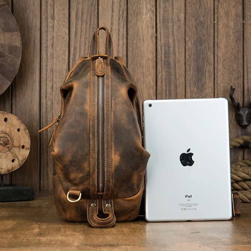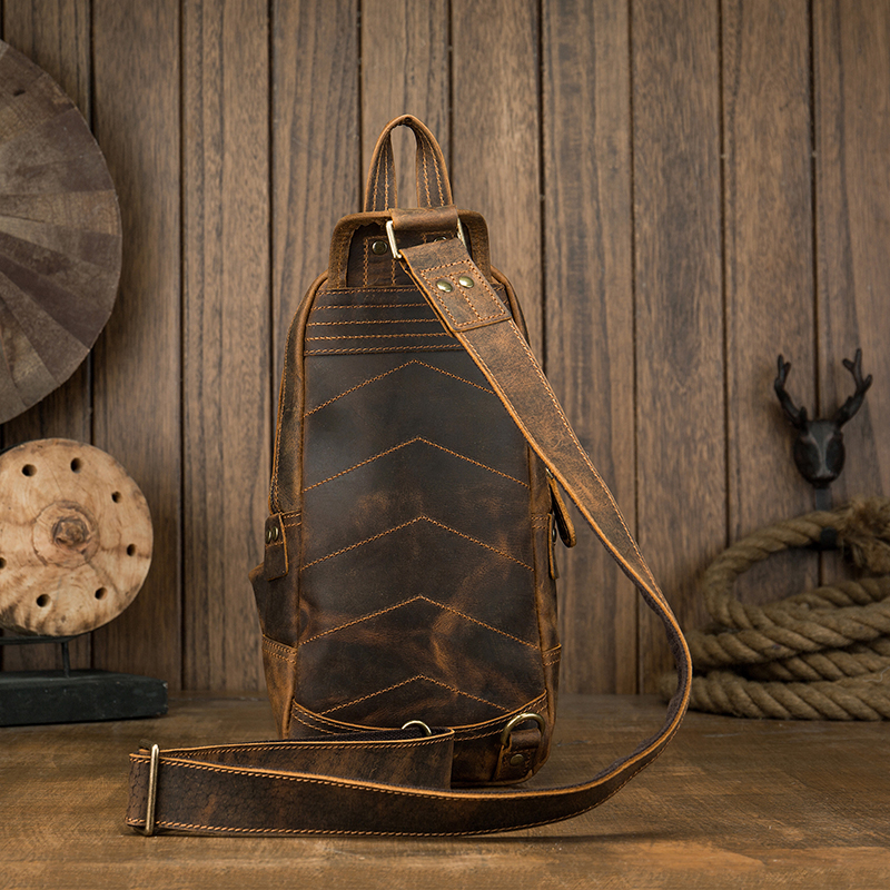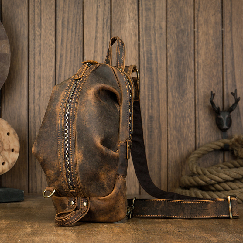 Handmade cowhide chest bag men's casual leather Japanese and Korean messenger bag men's tide crazy horse leather retro Joker men's bag