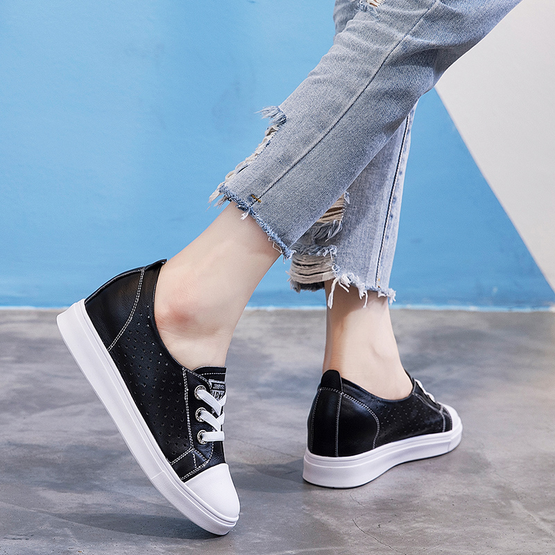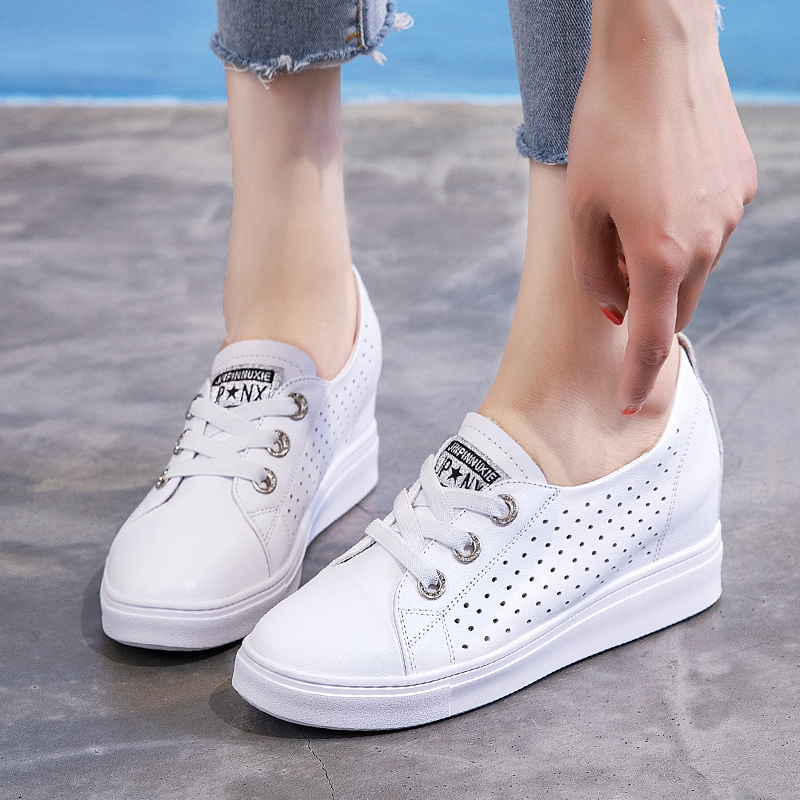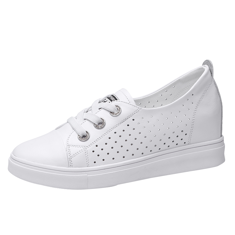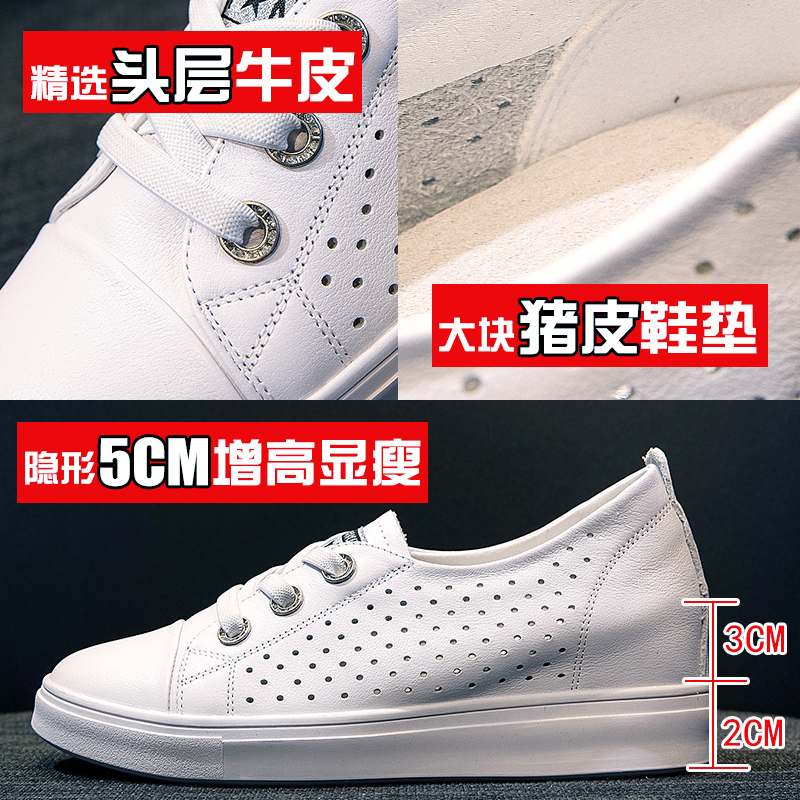 Leather small white shoes women's summer 2022 new all-match shallow mouth one pedal inner heightening hollow breathable thin white shoes