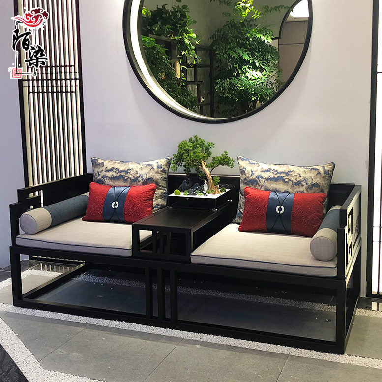 New Chinese-style Arhat bed ebony ash wood home sofa bed antique Jingsi collapsed double bed couch carved Arhat couch