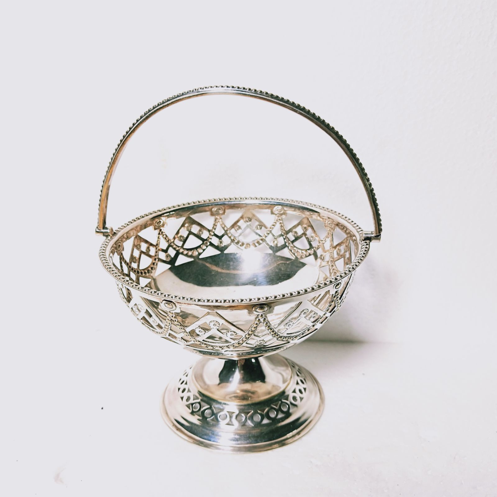 1890s Vintage Silver Sterling Silver Flower Basket Nut Tray Height 16 5cm