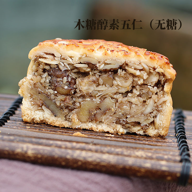 Five kernel filling (melon seed kernel almond walnut kernel sesame kernel light in almond ham meat sugar winter melon cake powder white sugar edible vegetable oil preserves drinking water wine edible salt). Food additive (sodium dehydroacetate sodium carbonate). The kernel content in the filling ≥ 29% is detailed in the packaging bag