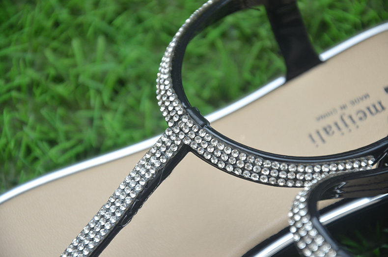 Korean Version Fashion Water Drill Female Summer Light T-shape Buckle Flat Bottom Herringbone Sandals Sandals Shoes Casual Clip Roman sandals