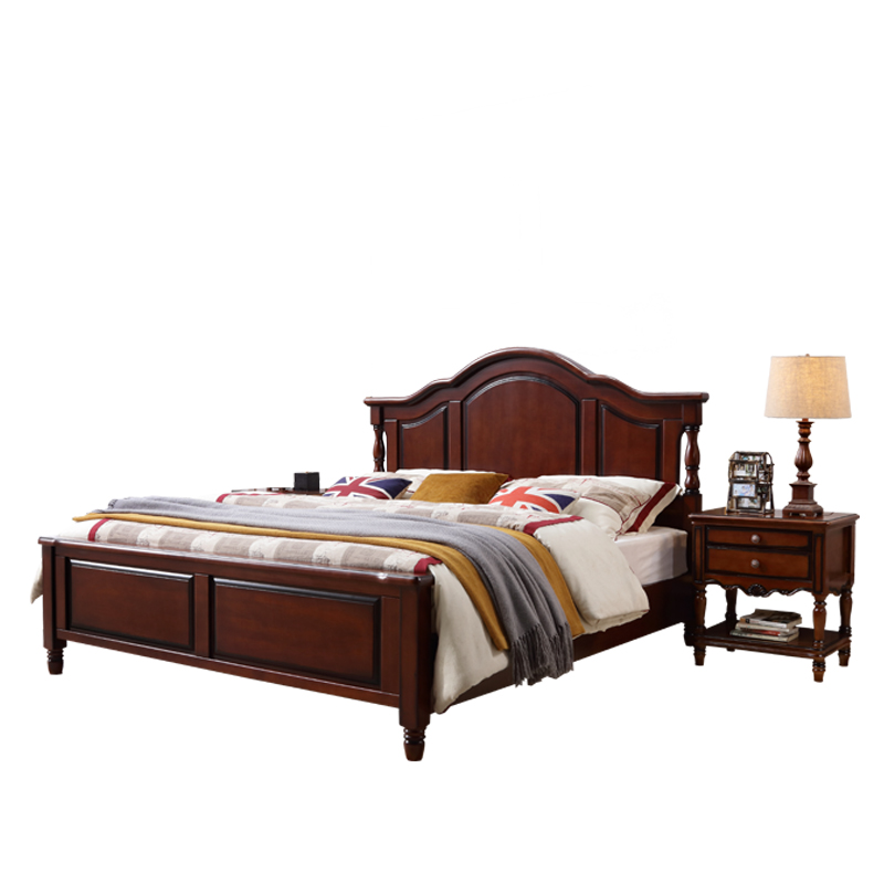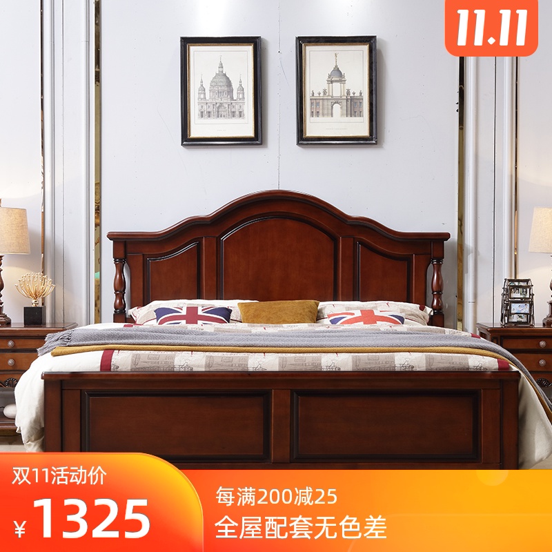 American-style solid wood bed 1 5 m 1 8m light luxury country European-style high box bed walnut dark master bedroom king bed wedding bed