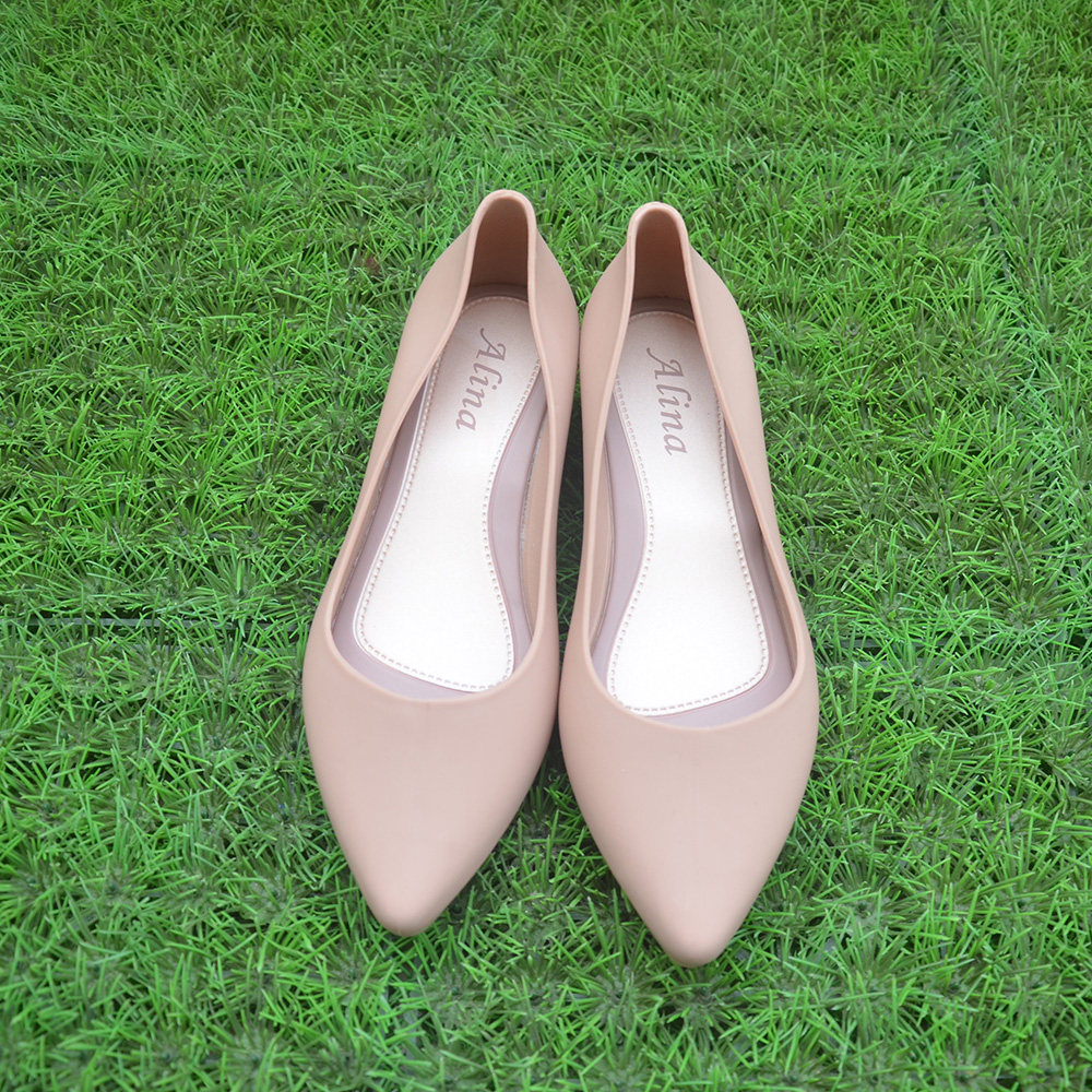 Brief Pure Color Woman Spring Summer Single Shoes Heel Slope Heel Soft Gum Comfort Rainy Day Waterproof Daily Commute Low Bunch Shoes