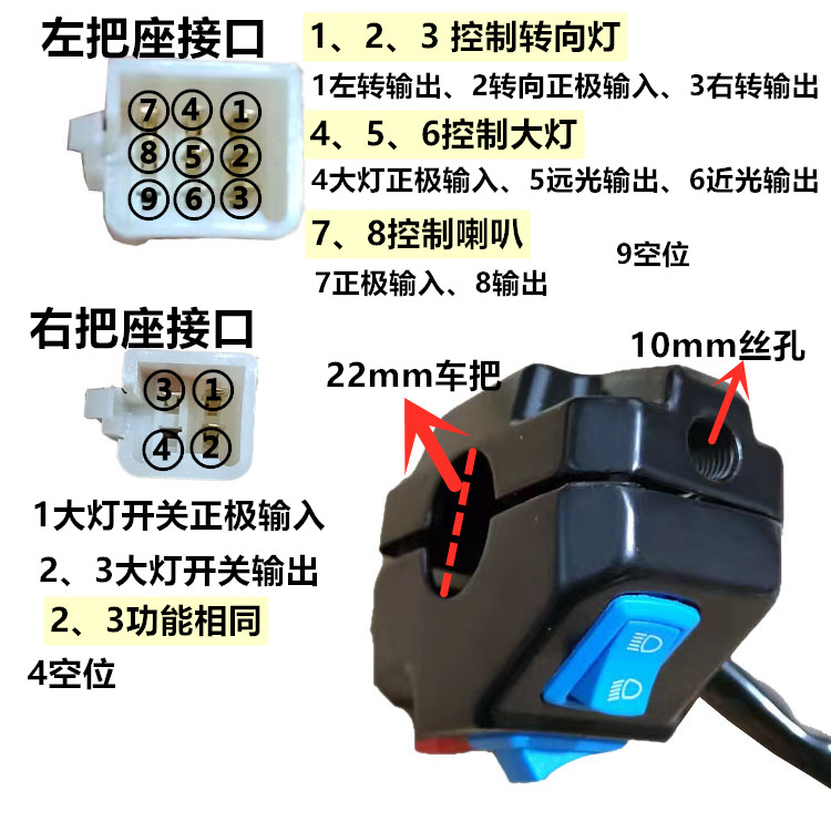 Electric tricycle to turn the seat assembly switch-horn living-room light to the far and near to change light three-blocking universal taiko style