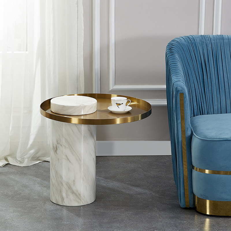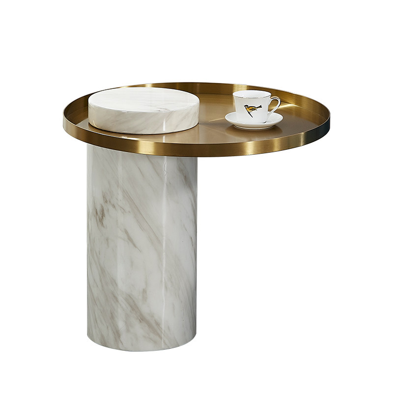 Sofa side table modern minimalist home living room marble corner table round stainless steel small coffee table phone side table