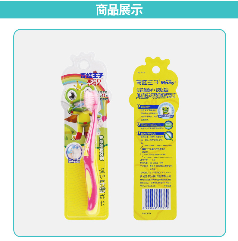Frog Prince Children's toothbrush 3-5-6-12 years old baby soft hair toothpaste Baby Baby Baby Baby Baby Baby teeth set