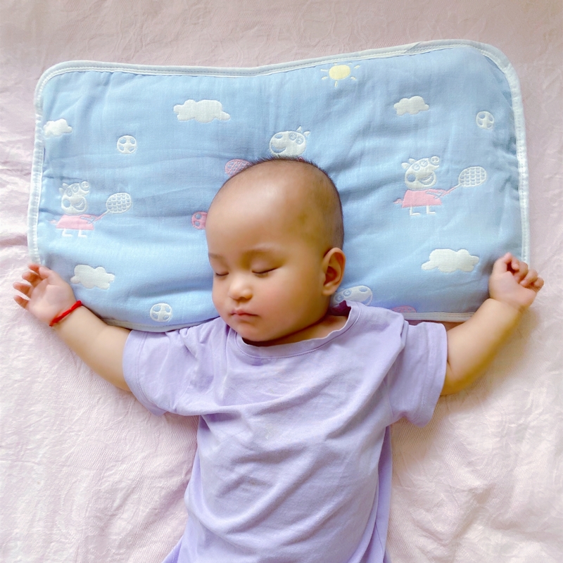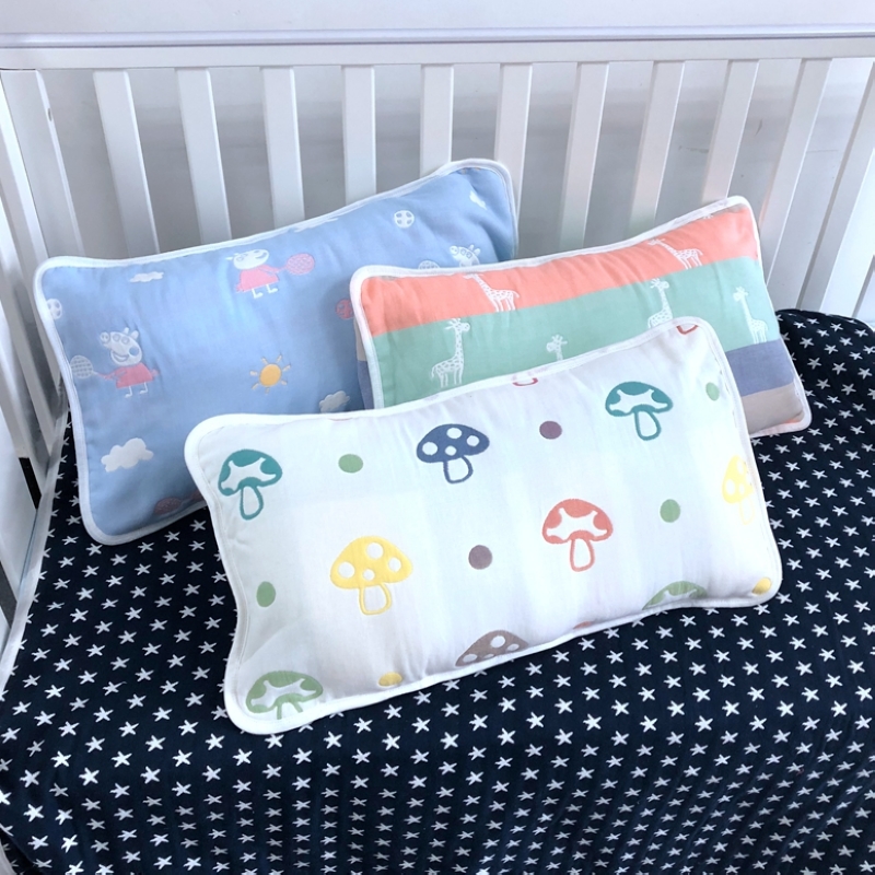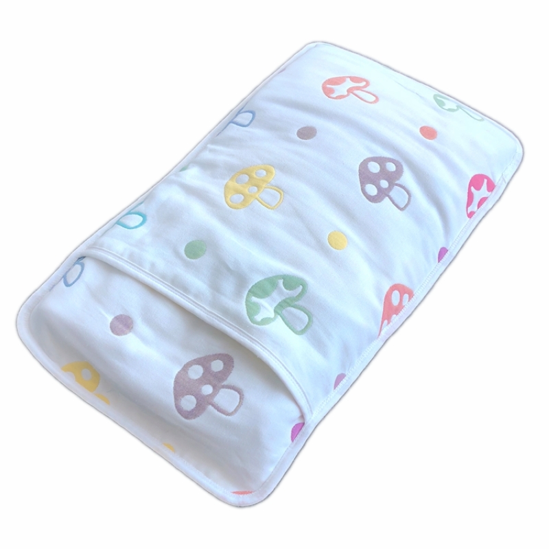 Six-layer pure cotton mushroom infant gauze pillow headgear Double face Kindergarten increased child pillowcase season with autumn and winter