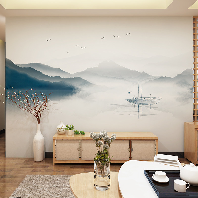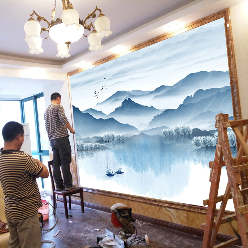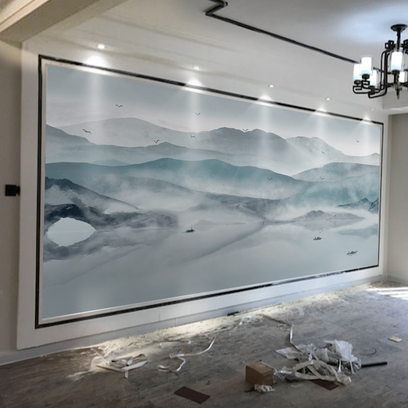 5d Chinese ink landscape painting TV background wall decoration wallpaper living room mural 8d bamboo wood fiber integrated wall panel