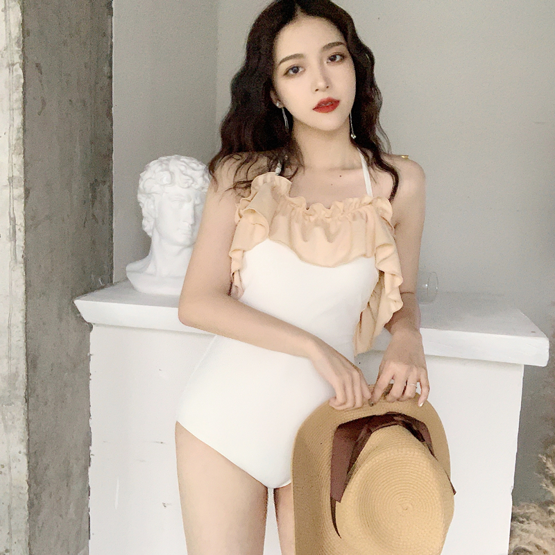 Xiaohongshu swimsuit women's small chest steel support gathers sexy backless slimming cover belly conservative one-piece boxer swimsuit hot spring