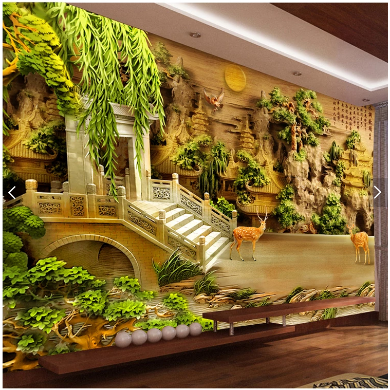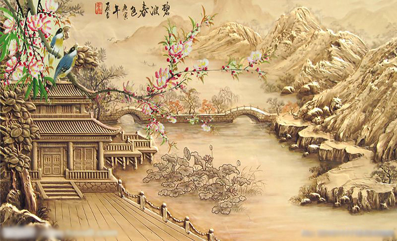 3D three-dimensional wall panel relief Chinese landscape high-gloss painting landscape Feng Shui 5d mural living room bamboo and wood fiberboard painting