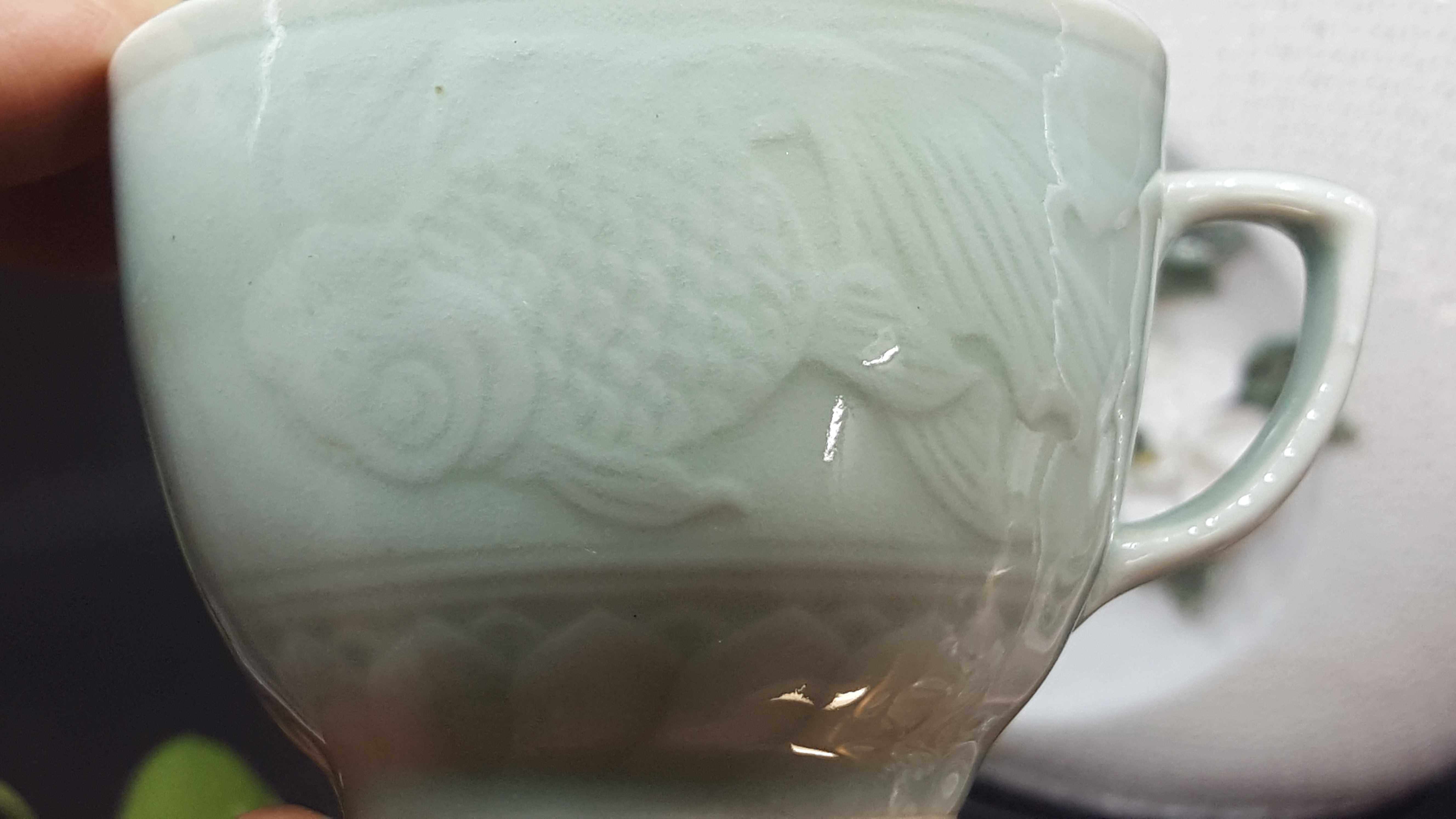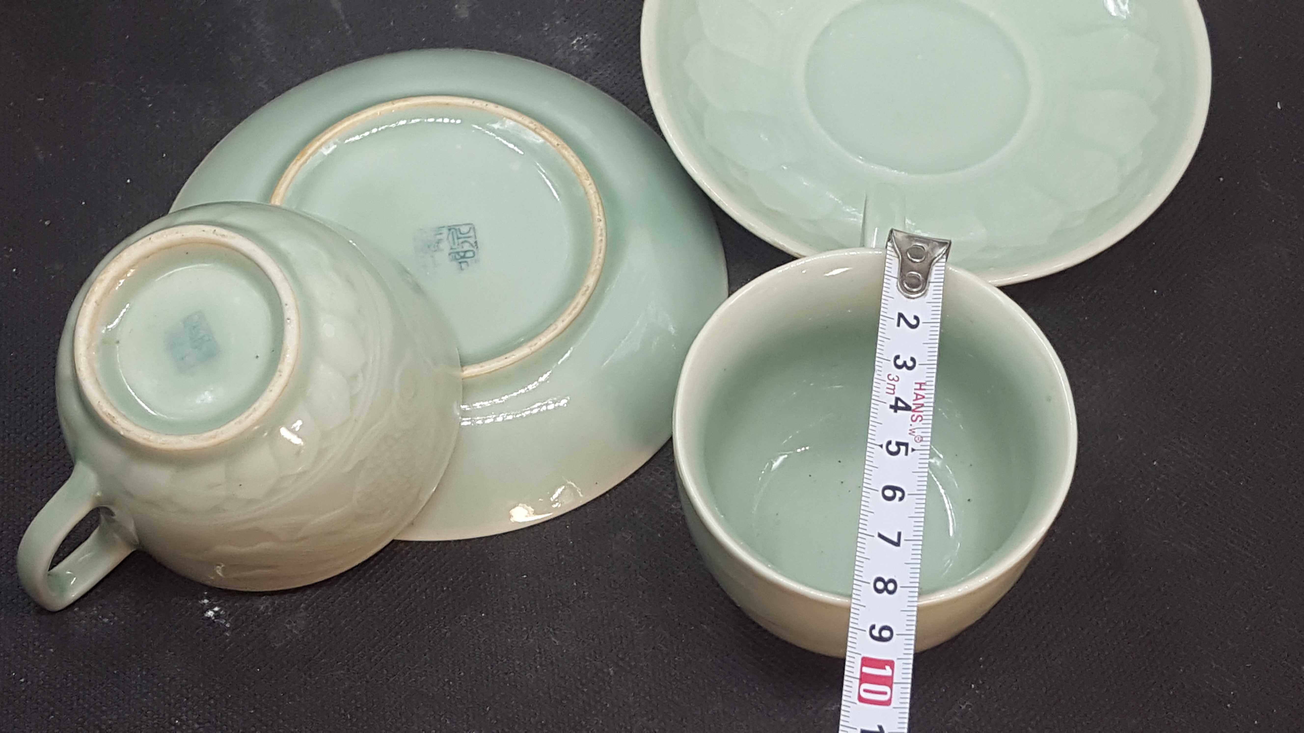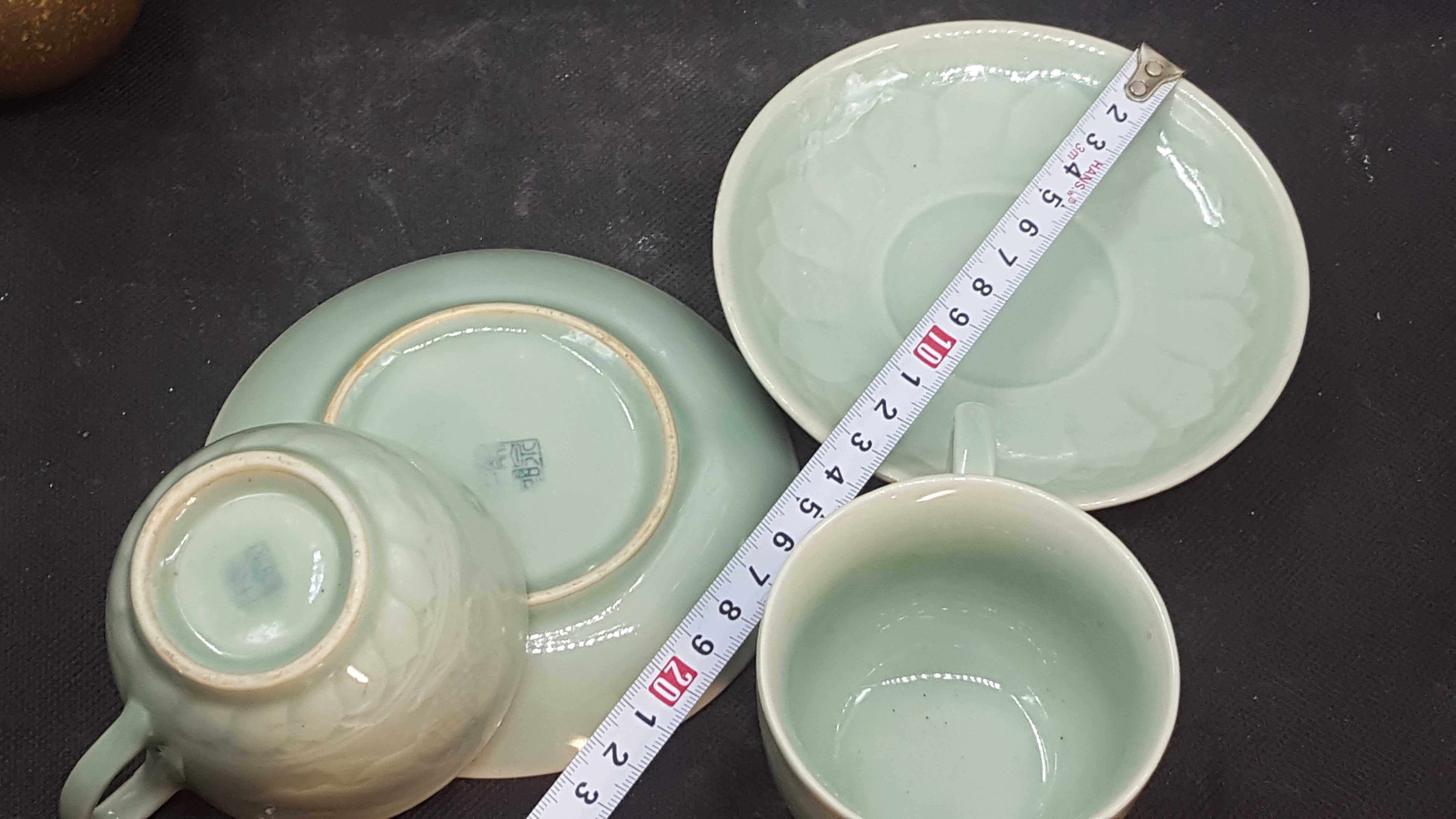 Chaoshan tea culture Longquan old factory goods coaster Goldfish coaster pair (2 plates and 2 cups)