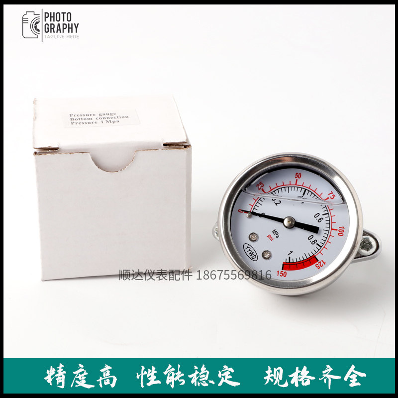 YN-50Z stainless steel panel pressure meter 1mpa 1 6mpa 2 5mpa Grease Water Pipe Cleaner Pressure Meter