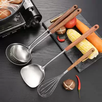 Wooden handle stainless steel spatula set anti-scald cooking spatula kitchenware spatula spoon household cooking spoon