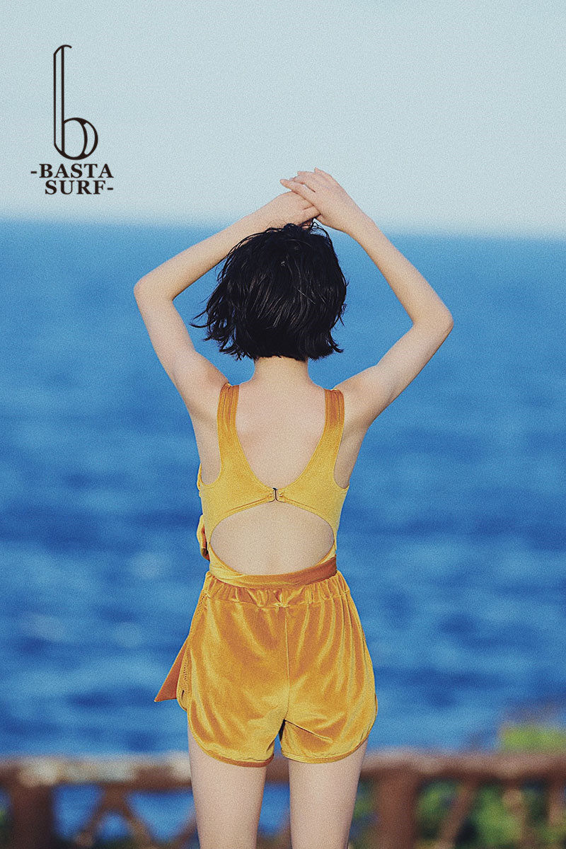 Swimsuit Women's new upscale velvety ruffles back even body flat corner Two wearing conservative and slim fit for holiday soak spa swimsuit