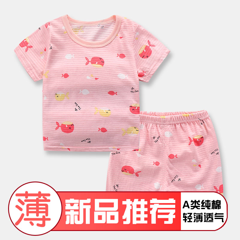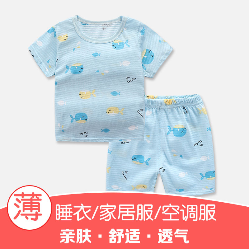 Baby pajama suit summer cotton baby toddler children thin long-sleeved home air conditioning clothes for men and women