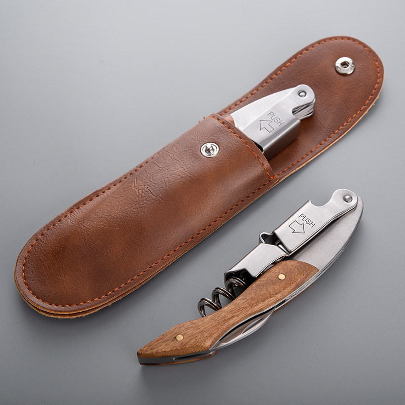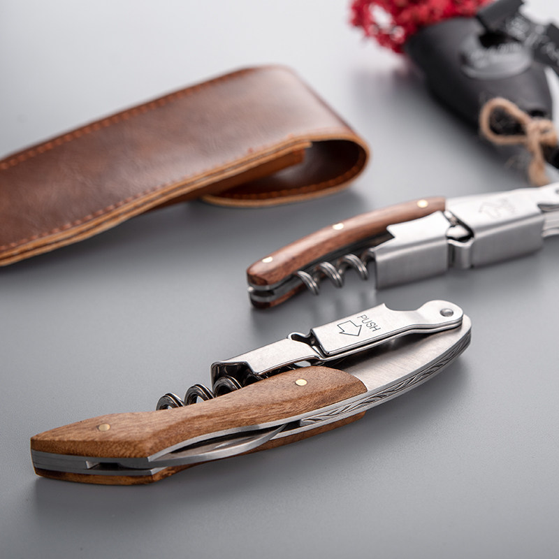 Rosewood bottle opener with leather case Thickened shadow wood bottle opener with leather case