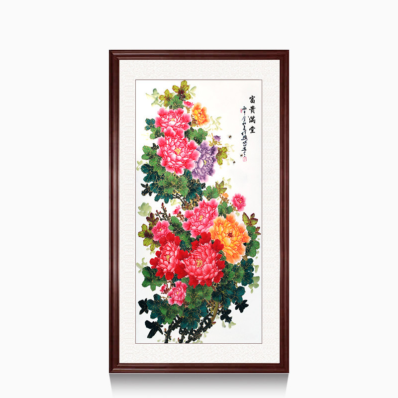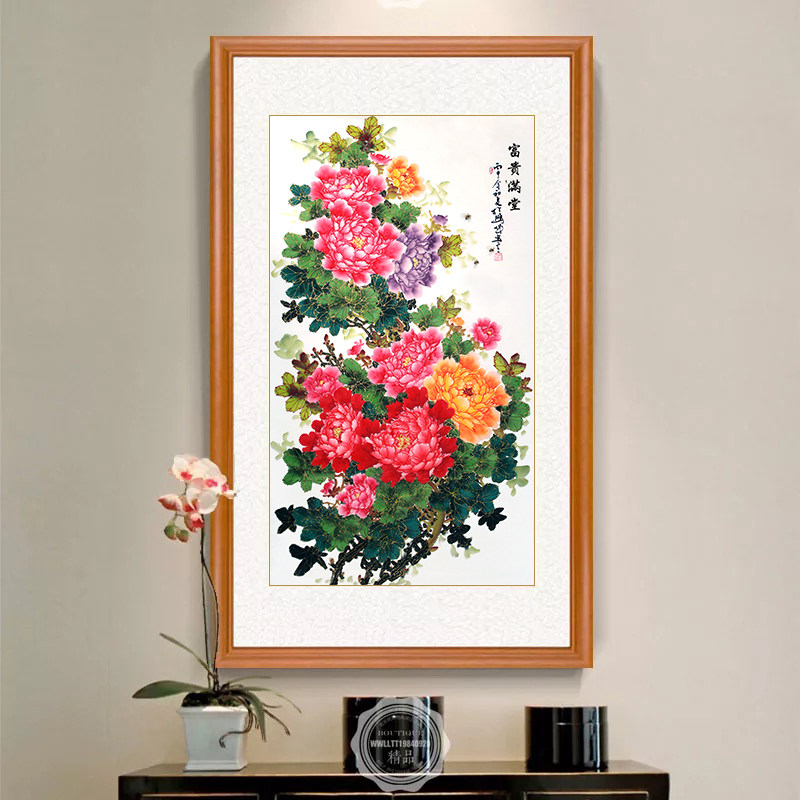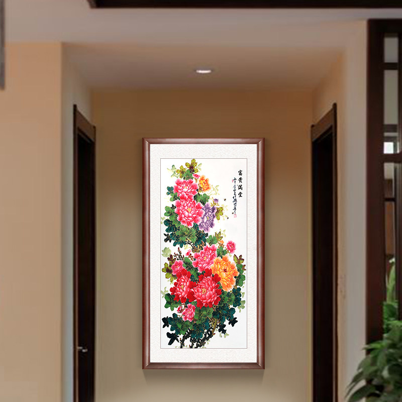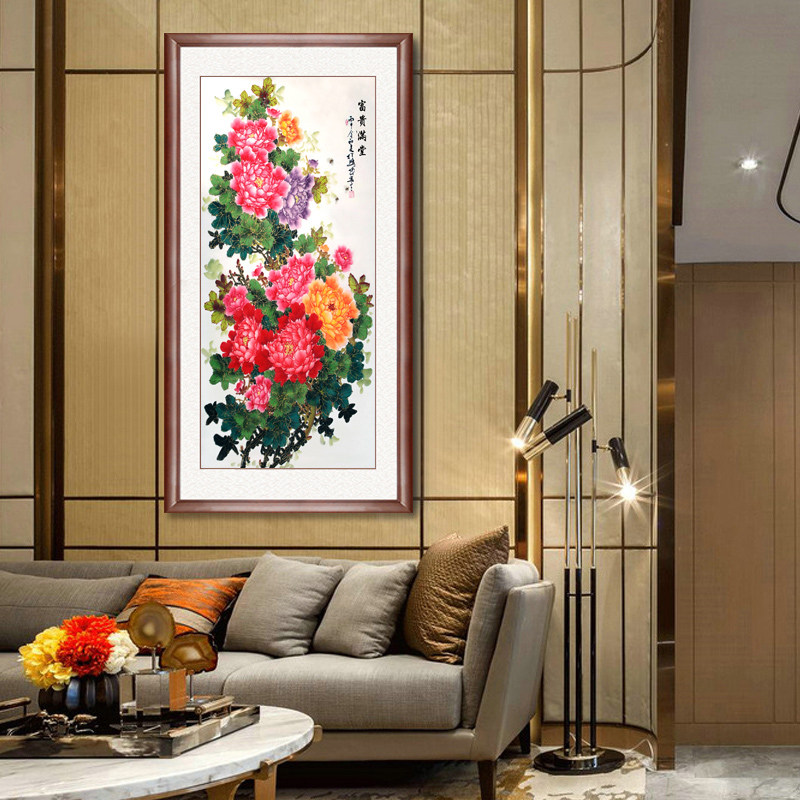 Home Line Peony vertical porch flower rich modern minimal new Chinese decoration painting hanging drawing room