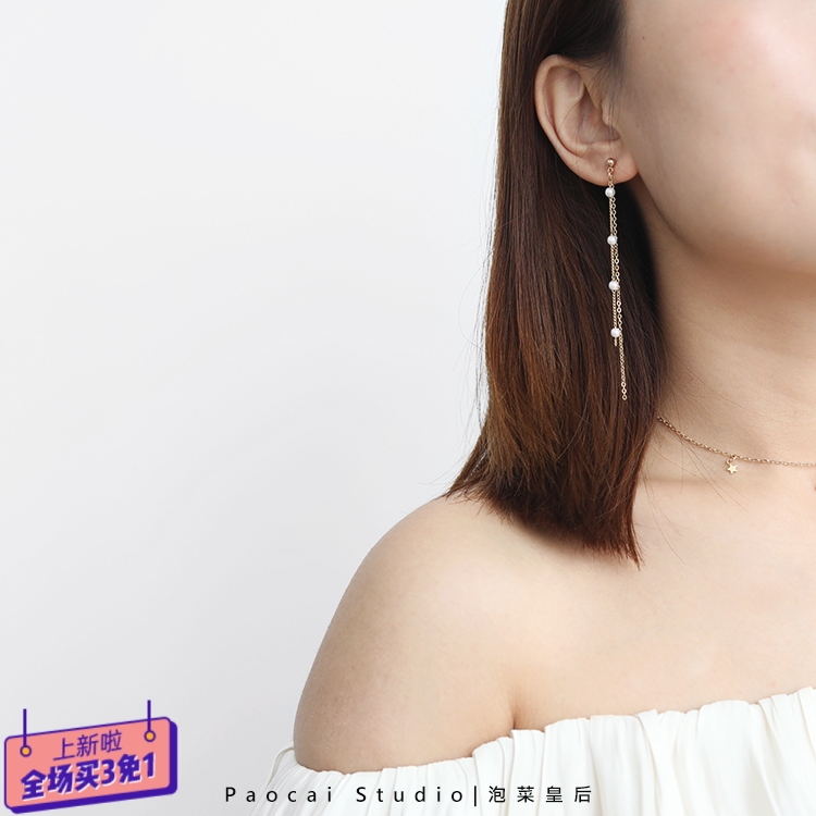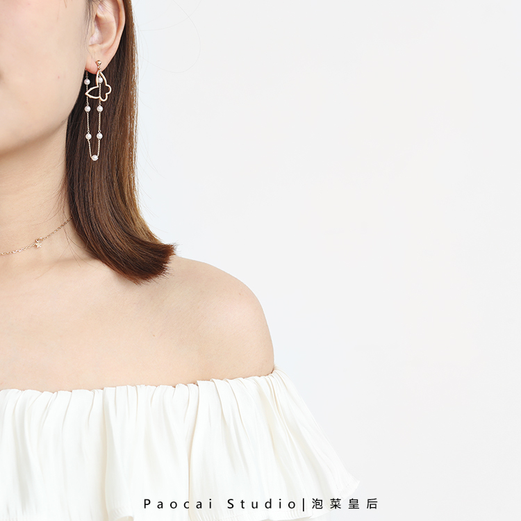 Love pearl ring small pearl hollow diamond small pearl hollow star Small pearl Small star piece Pearl earrings Connect pearl small streamline hollow butterfly pearl chain earrings Water