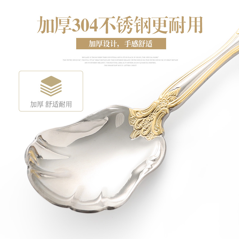 Golden Creative Meal Spoon Eu Style Western Meal Cute Knife Fork Home Cutlery Mesh Red Dinner Small Spoon 304 Stainless Steel