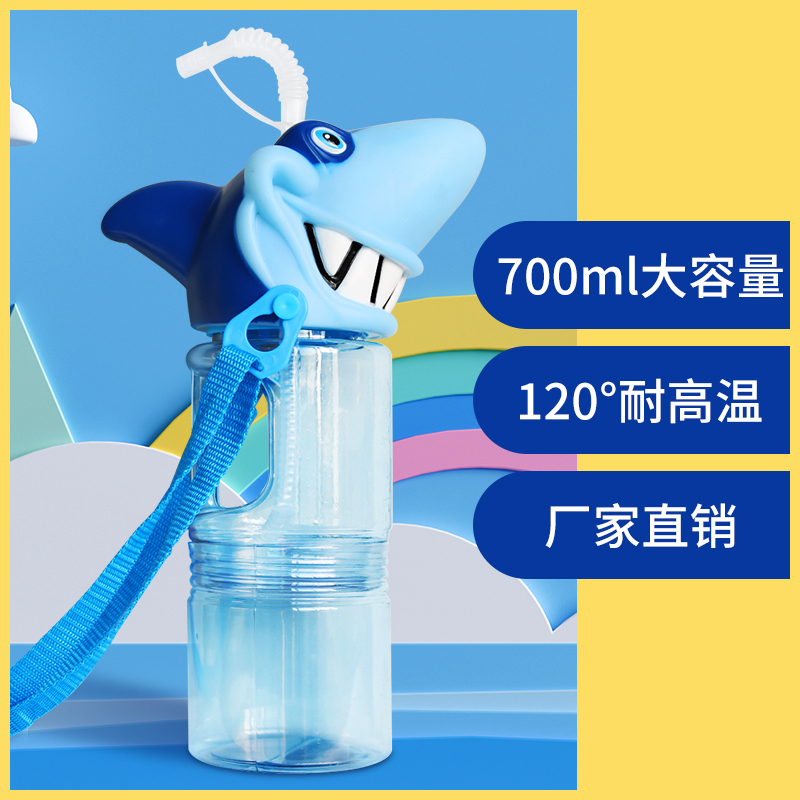 Summer new trend children's creative net red straw cup funny vibrato bar double layer transparent big shark water cup