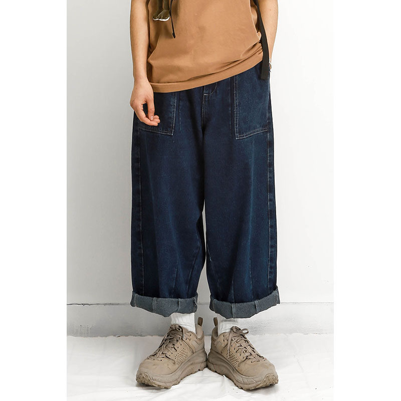 Japanese net red retro fat legs dark tooling wide leg pants Jeans men straight loose big feet nine-point pants women