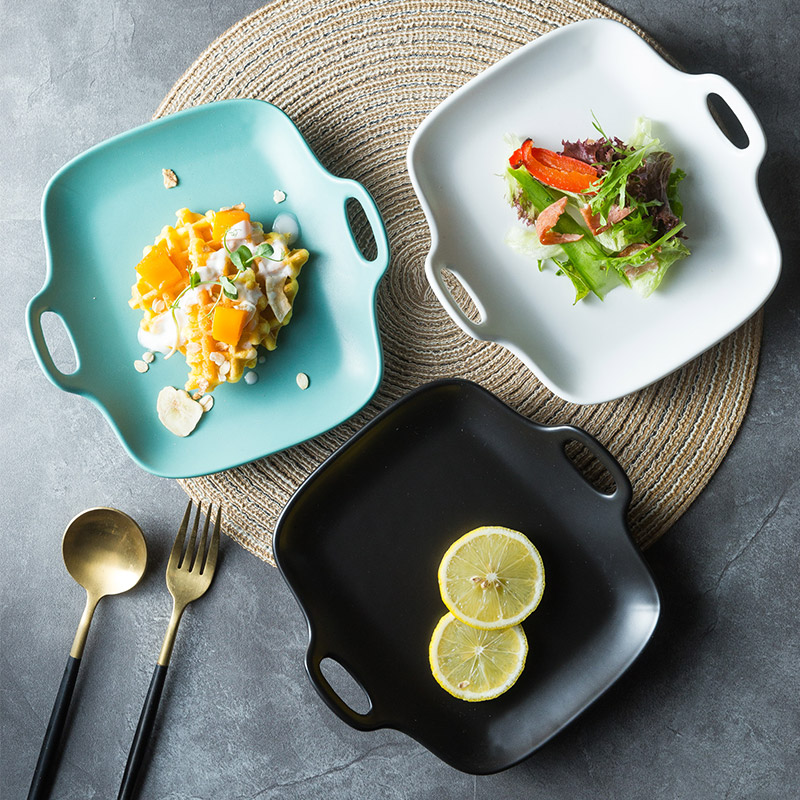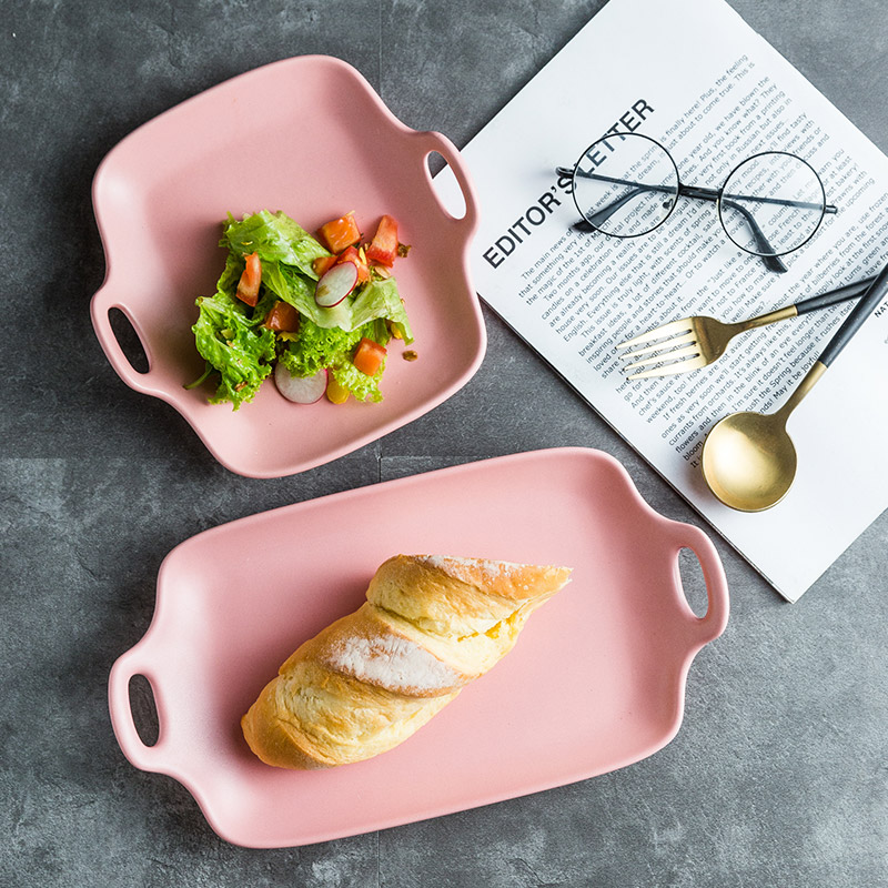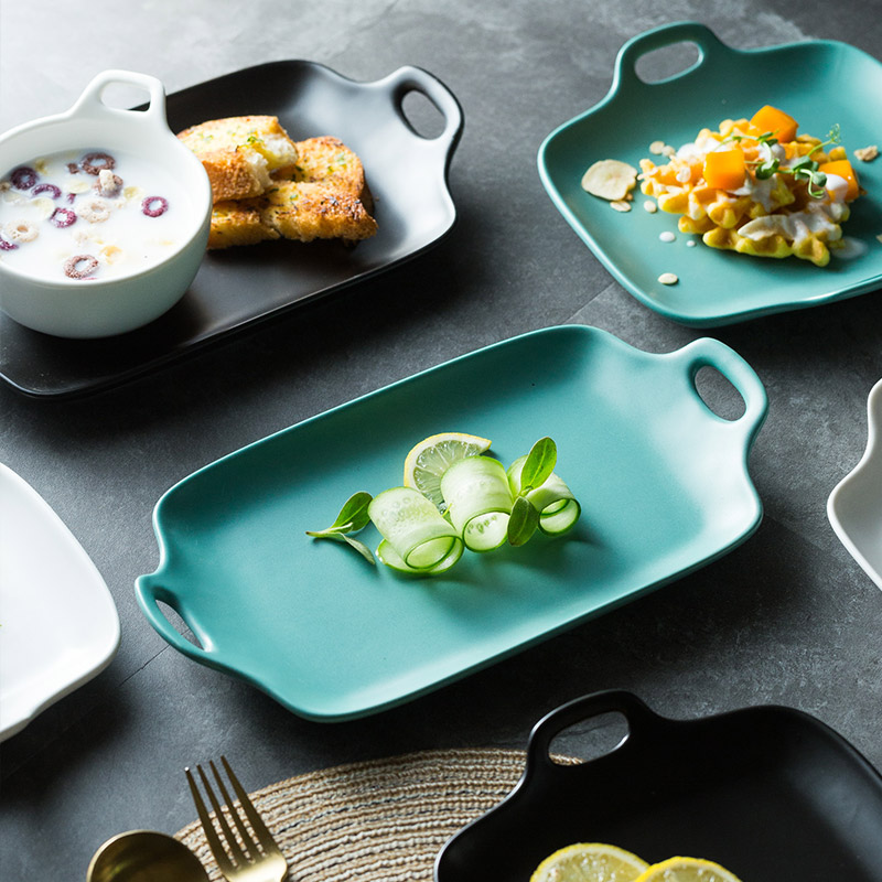 Double-eared rectangular baking plate plate Nordic creative baking plate home plate western plate hotel tableware plate