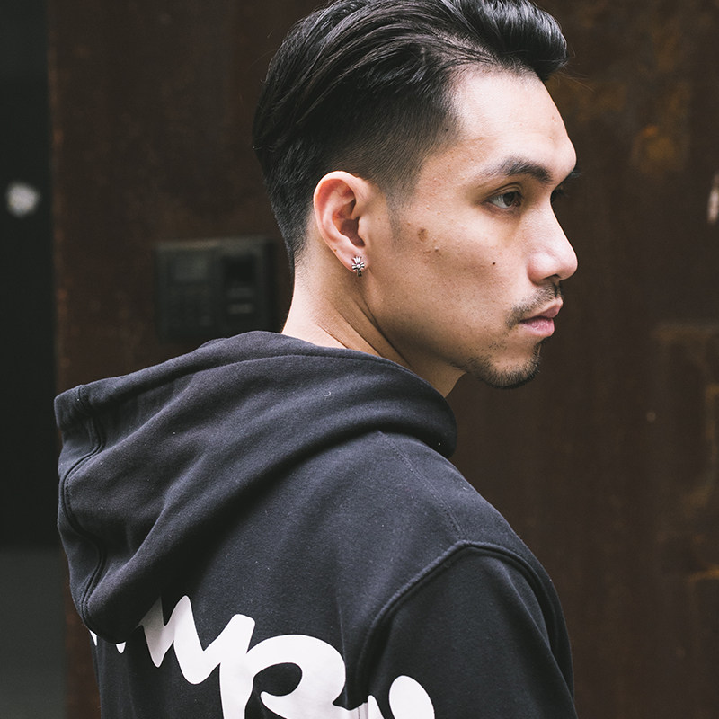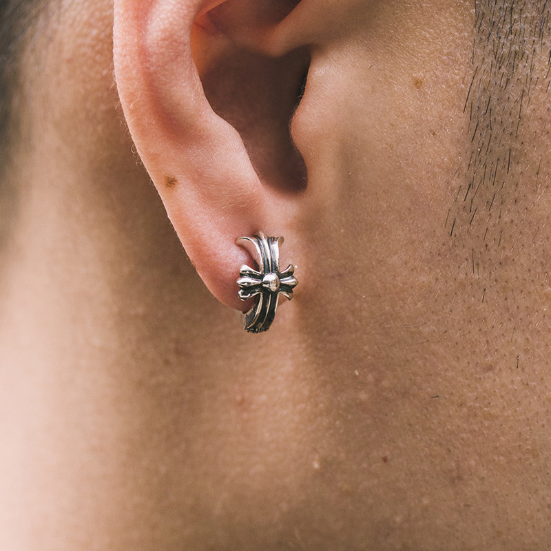 925 silver retro minimalist cross ear clip hip hop cool ear piercing-free tide men Thai silver stud earrings (single)