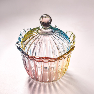 Nordic glass large flower stripes color storage with lid can candy pot hotpot shop self-service sauce bowl