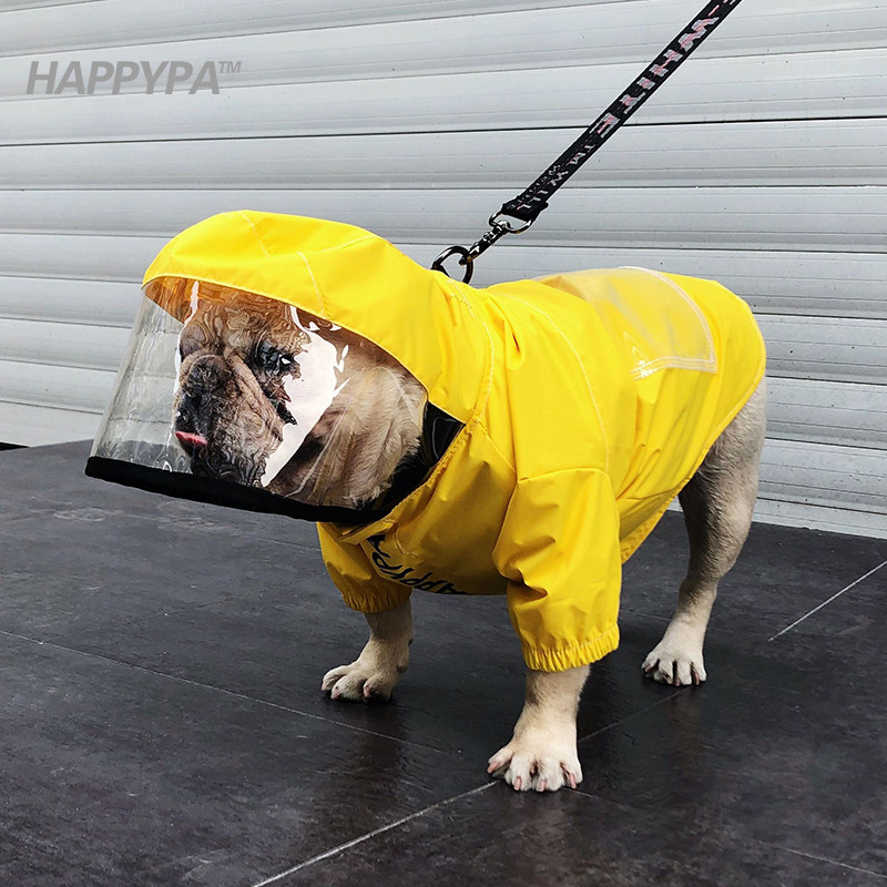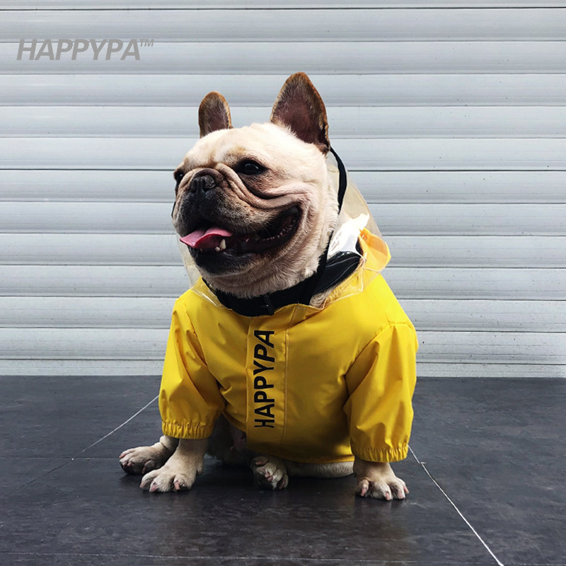 HAPPYPA tide brand yellow pet raincoat French fighting autumn coat dog two-legged poncho Teddy waterproof clothes