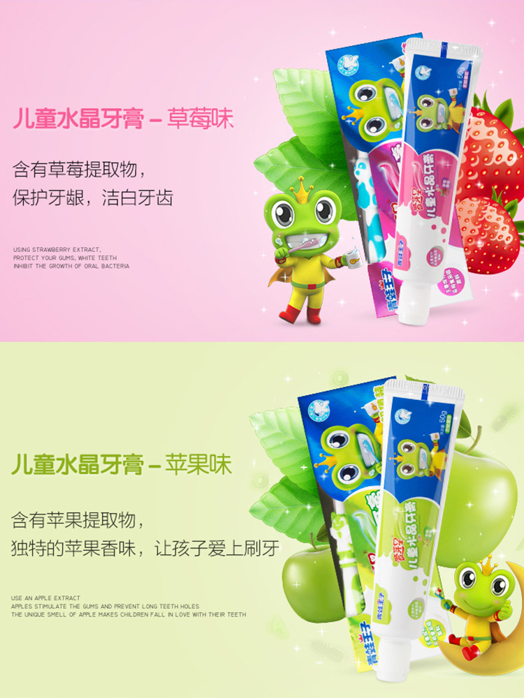 Frogs Prince Child Fruit Toothpaste 3-6-12 Year Old Crystal Tooth Swap Period Apple Strawberry Taste Baby
