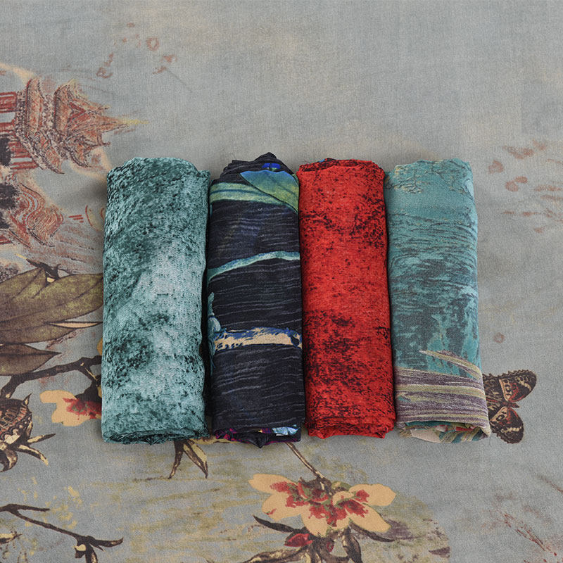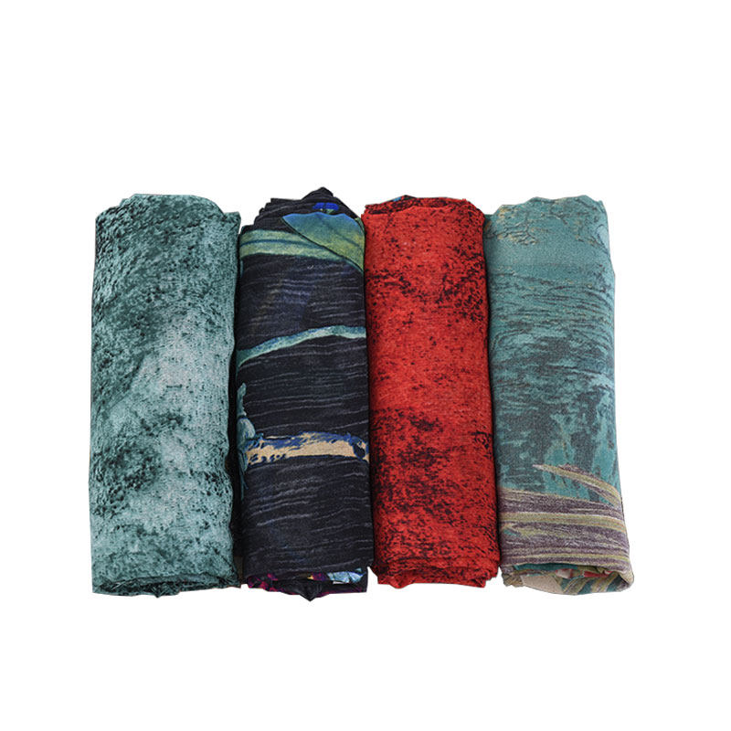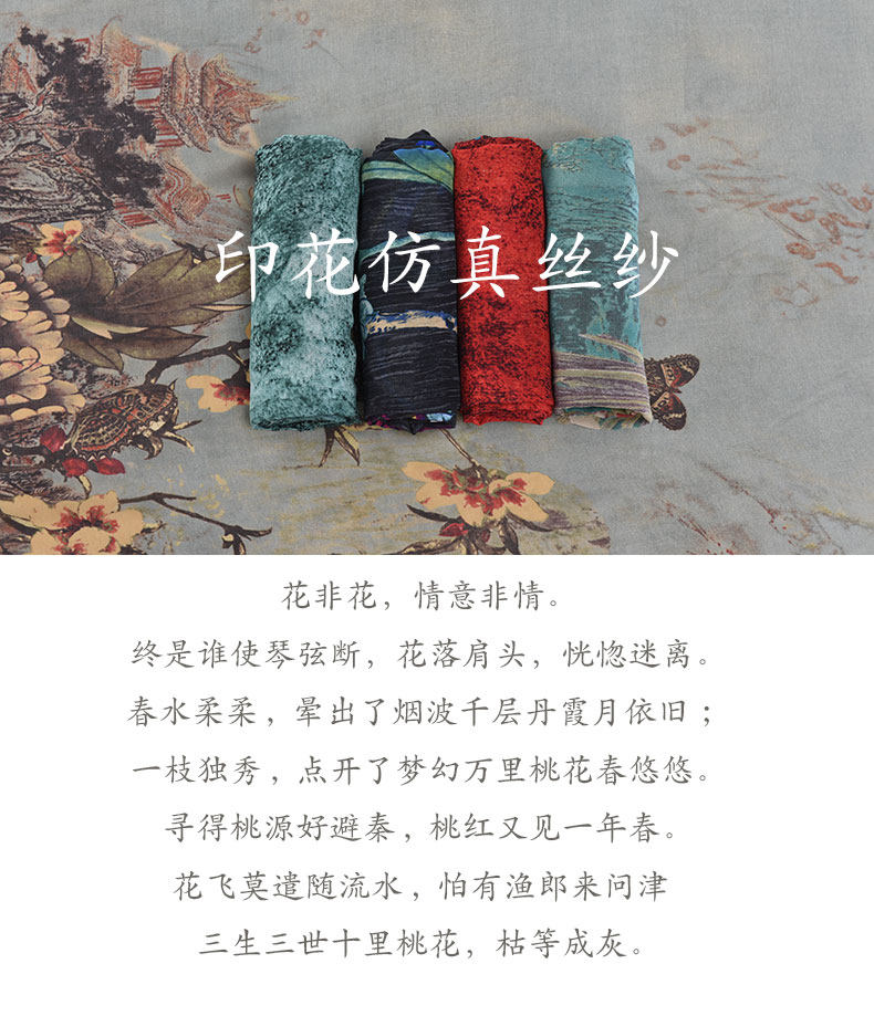 Ice silk hemp fabric imitation silk yarn printing fabric Chinese style clothing fabric mother summer chiffon gauze