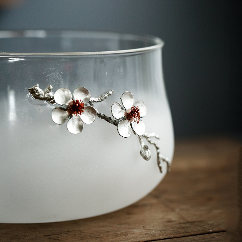 Glass tea wash transparent large hammer pattern cloud mist tin flower Gongfu Tea accessories Heat-resistant thickened cup wash fruit plate